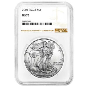 2001 $1 1-oz American Silver Eagle NGC MS70 Brown Label