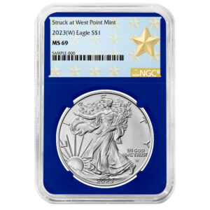 2023 (W) $1 1-oz American Silver Eagle NGC MS69 West Point Star Label Blue Core