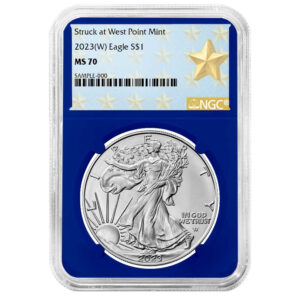 2023 (W) $1 1-oz American Silver Eagle NGC MS70 West Point Star Label Blue Core