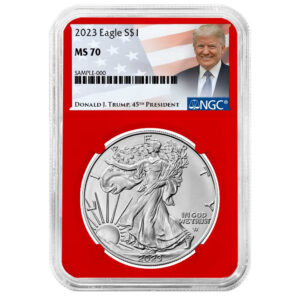 2023 $1 1-oz American Silver Eagle NGC MS70 Trump Label Red Core