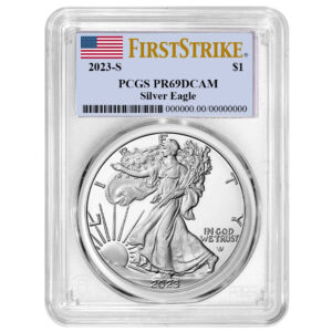 2023-S $1 1-oz Proof American Silver Eagle PCGS PR69DCAM FS Flag Label White Frame