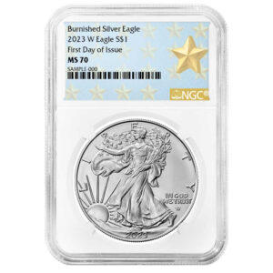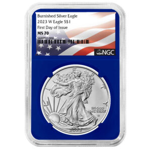 2023-W $1 1-oz Burnished American Silver Eagle NGC MS70 FDI Flag Label Blue Core