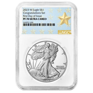 2023-W $1 1-oz Proof American Silver Eagle Congratulations Set NGC PF70UC FDI First Label