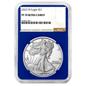 2023-W $1 1-oz Proof American Silver Eagle NGC PF70UC Brown Label Blue Core