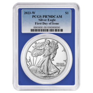 2023-W $1 1-oz Proof American Silver Eagle PCGS PR70DCAM FDOI Blue Label Blue Frame