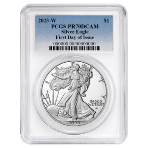 2023-W $1 1-oz Proof American Silver Eagle PCGS PR70DCAM FDOI Blue Label White Frame