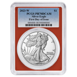 2023-W $1 1-oz Proof American Silver Eagle PCGS PR70DCAM FDOI Blue Label Red Frame