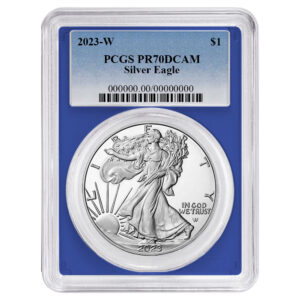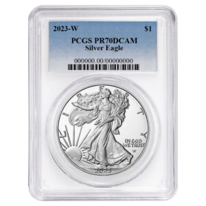 2023-W $1 1-oz Proof American Silver Eagle PCGS PR70DCAM Blue Label White Frame
