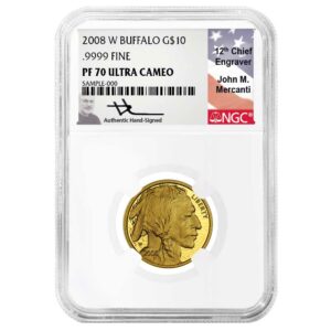 2008 $10 1/4-oz Proof American Gold Buffalo NGC PF70UC Mercanti Flag Label