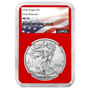 2024 $1 1-oz American Silver Eagle NGC MS70 ER Flag Label Red Core