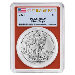 2024 $1 1-oz American Silver Eagle PCGS MS70 FDOI Blue Label Red Frame