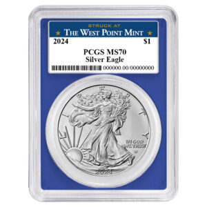 2024 $1 1-oz American Silver Eagle PCGS MS70 West Point Label Blue Frame