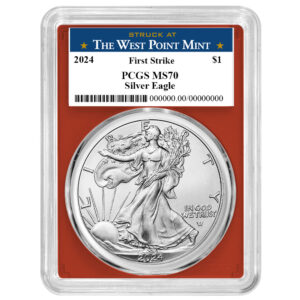 2024 $1 1-oz American Silver Eagle PCGS MS70 FDOI West Point Label Red Frame
