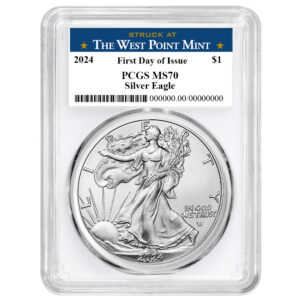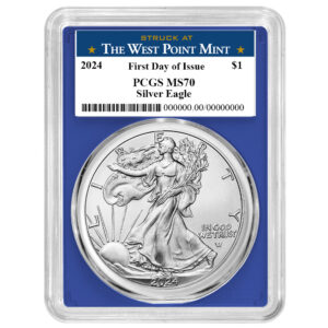 2024 $1 1-oz American Silver Eagle PCGS MS70 FDOI West Point Label Blue Frame