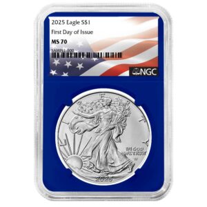 2025 $1 1-oz American Silver Eagle NGC MS70 FDI Flag Label Blue Core