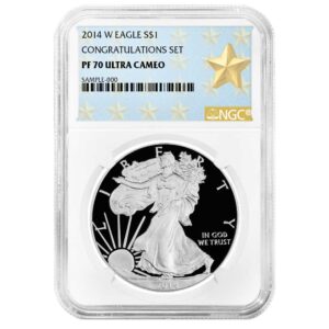 2014-W $1 1-oz Proof American Silver Eagle Congratulations Set NGC PF70UC West Point Star Label