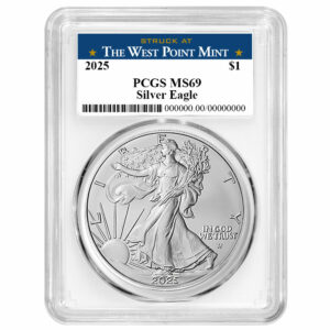 2025 $1 1-oz American Silver Eagle PCGS MS69 West Point Label White Frame