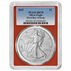 2025 $1 1-oz American Silver Eagle PCGS MS70 FDOI Blue Label Red Frame