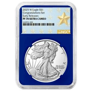 2025-W $1 1-oz Proof American Silver Eagle Congratulations Set NGC PF70UC ER Blue Label