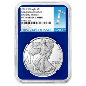 2025-W $1 1-oz Proof American Silver Eagle Congratulations Set NGC PF70UC FDI First Label Blue Core