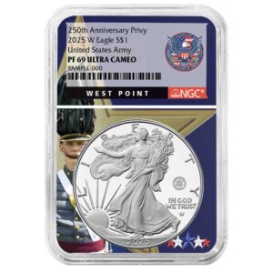 2025-W $1 1-oz Proof American Silver Eagle Army Privy NGC PF69UC West Point Core 250th Anniversary
