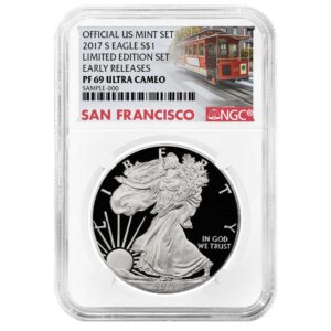 2017-S $1 1-oz Proof American Silver Eagle Limited Edition Set NGC PF69UC Trolley ER Label