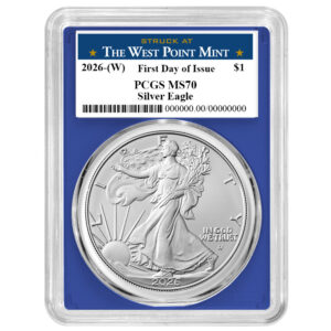 2026 (W) $1 1-oz American Silver Eagle PCGS MS70 FDOI West Point Label Blue Frame