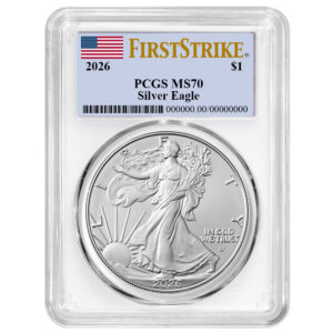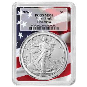 2026 $1 1-oz American Silver Eagle PCGS MS70 FS Flag Label White Frame