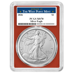 2026 $1 1-oz American Silver Eagle PCGS MS70 West Point Label Red Frame