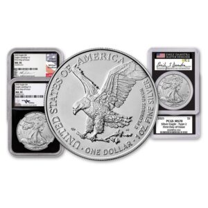 3pc Set – 2021 American Silver Eagle T2 Scarce and Unique Coin Division NGC / PCGS MS70 FDI Mercanti/Gaudioso/Damstra Signed Labels w/ Retro Core