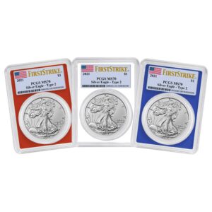 3pc Set – 2021 $1 1-oz T2 American Silver Eagle PCGS MS69 FS Blue Label Red White Blue