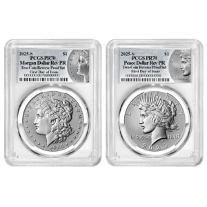 2pc Set – 2025-S Reverse Proof $1 Morgan and Peace Silver Dollar PCGS PR70 FDOI Morgan & Peace Label