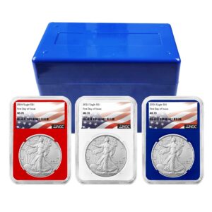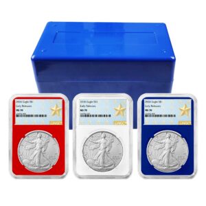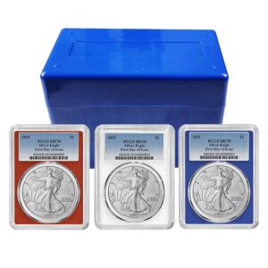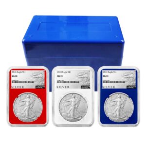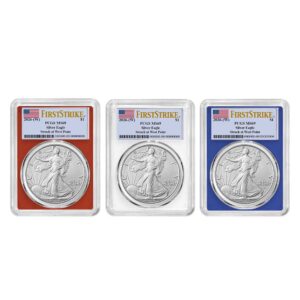 3pc Set – 2026 $1 1-oz American Silver Eagle PCGS MS70 Blue Label Red White Blue