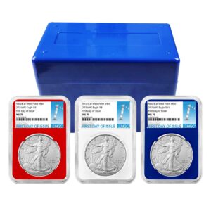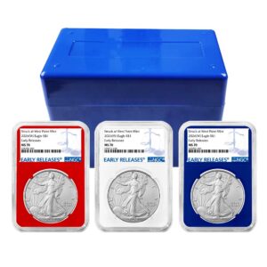 3pc Set – 2026 $1 1-oz American Silver Eagle NGC MS70 ER Blue Label Red White Blue