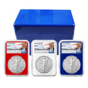 3pc Set – 2026 $1 1-oz American Silver Eagle NGC MS70 Trump Label Red White Blue