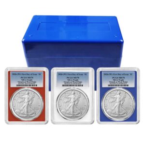 3pc Set – 2026 (W) $1 1-oz American Silver Eagle PCGS MS70 FDOI Blue Label Red White Blue
