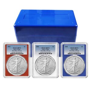 3pc Set – 2026 $1 1-oz American Silver Eagle PCGS MS70 FDOI Blue Label Red White Blue