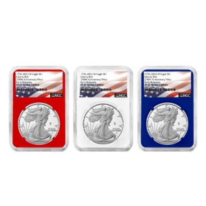 3pc Set – 2026-W $1 1-oz Proof American Silver Eagle NGC PF69UC ER Flag Label Red White Blue