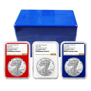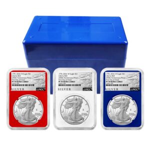 3pc Set – 2026-W $1 1-oz Proof American Silver Eagle NGC PF70UC ER Blue Label Red White Blue