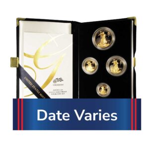 Proof American Gold Eagle 4pc Set Box, OGP & COA Random Date