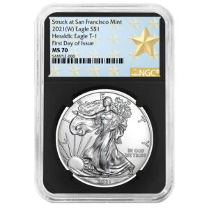 2021 (W) $1 1-oz T-1 American Silver Eagle NGC MS70 FDI Black Label Blue Core