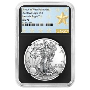 2021 (W) $1 1-oz T-1 American Silver Eagle NGC MS70 FDI West Point Star Label
