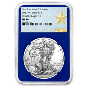 2021 (W) $1 1-oz T-1 American Silver Eagle NGC MS70 West Point Star Label Blue Core