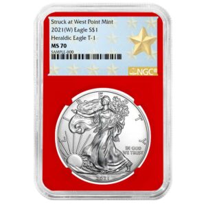 2021 (W) $1 1-oz T-1 American Silver Eagle NGC MS70 West Point Star Label Red Core