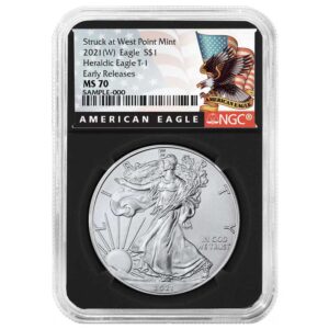 2021 (W) $1 1-oz T-2 American Silver Eagle PCGS MS70 FS West Point Label White Frame