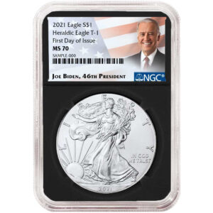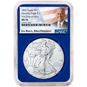 2021 $1 1-oz T-1 American Silver Eagle NGC MS70 FDI Biden Label Blue Core