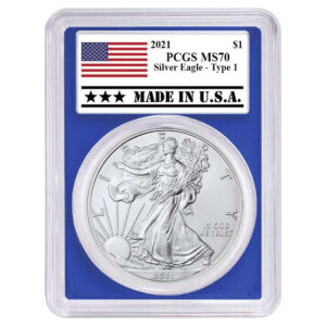 2021 $1 1-oz T-1 American Silver Eagle PCGS MS70 Made in USA Label Blue Frame