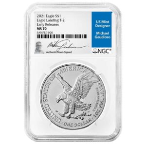 2021 $1 1-oz T-2 American Silver Eagle NGC MS70 ER Michael Gaudioso Signature