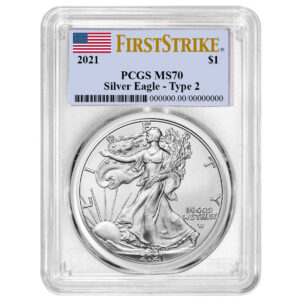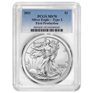2021 $1 1-oz T2 American Silver Eagle PCGS MS70 First T2 Production Blue Label