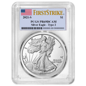 2021-S $1 1-oz T2 Proof American Silver Eagle PCGS PR69DCAM FS Flag Label